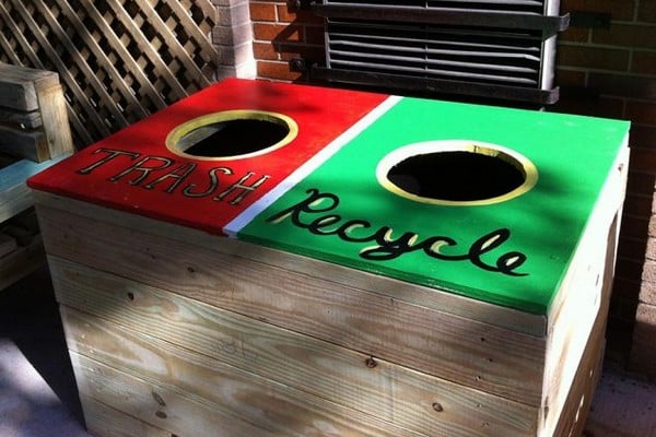 Make a stylish and functional outdoor trash bin using scrap wood or old cabinets. Separate it into compartments for easy recycling while keeping your garden tidy.