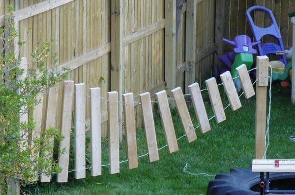 Bring music to your garden by upcycling wooden planks or metal pipes into a giant outdoor xylophone! Hang it on a wooden frame or fence to create a fun musical play area for kids (and adults, too!).