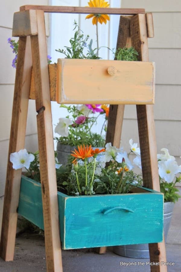 Don’t throw out that old dresser drawer—turn it into a quirky and colorful planter for your front porch or patio.