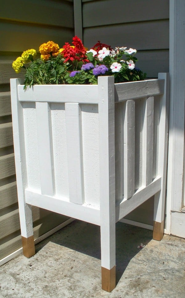 A simple gold-dipped effect on wooden planter legs makes for a chic and elegant display.