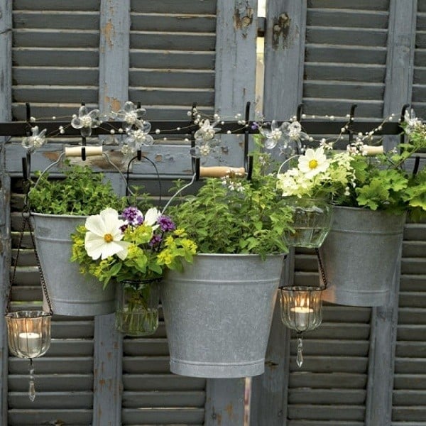 Old ceramic, metal, or wooden pots add a charming, classic look to your garden.