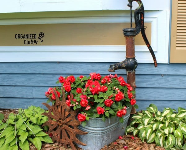 4. Rusty Milk Cans & Chicken Feeders as Garden Accents