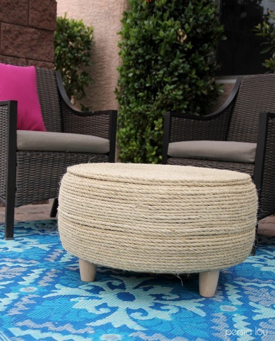Wrap rope around an old table or spool to create a rustic coffee table.