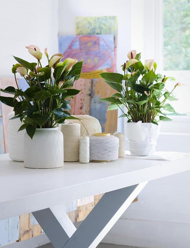 Anthuriums are known for their vibrant red, pink, or white spathes and shiny green leaves. Though slightly more demanding, they offer long-lasting blooms and a tropical vibe.