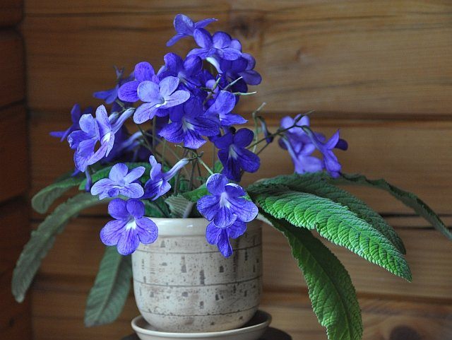 This elegant plant, closely related to African violets, features velvety leaves and clusters of tubular flowers in shades of purple, pink, or blue.