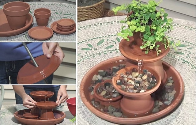 Stack terra cotta pots with a small pump to create a peaceful, flowing fountain.