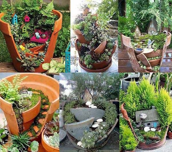 Don’t throw away broken terra cotta pots—turn them into enchanting fairy gardens!