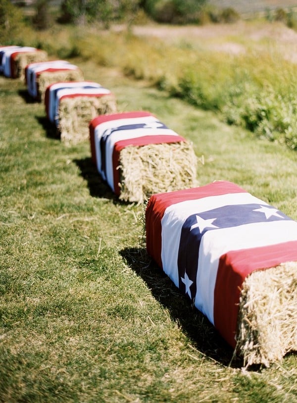 Even after fall, straw bales can be reused for patriotic décor, creating rustic seating and display areas for summer holidays.