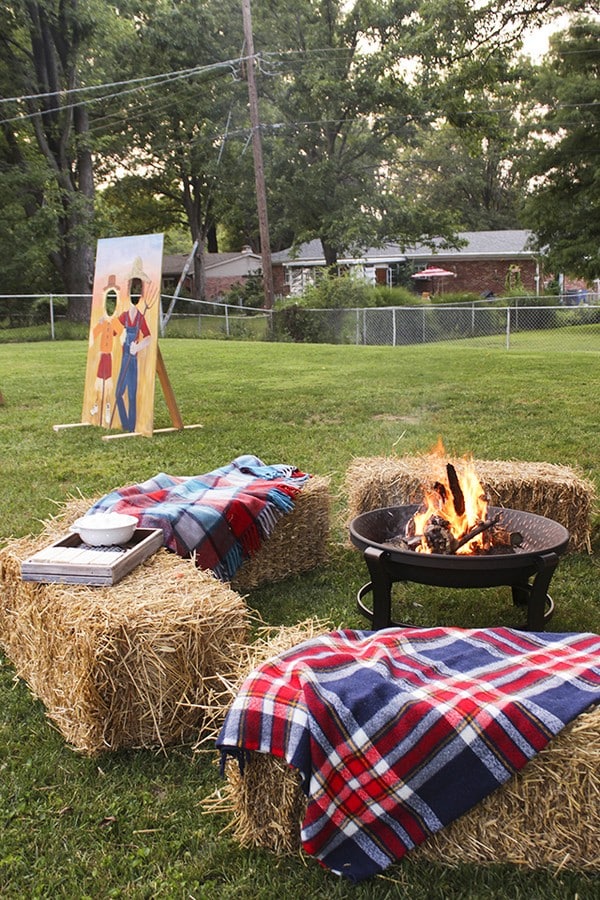 5. Backyard Fire Pit with Straw Bales & Blankets 🔥🛌