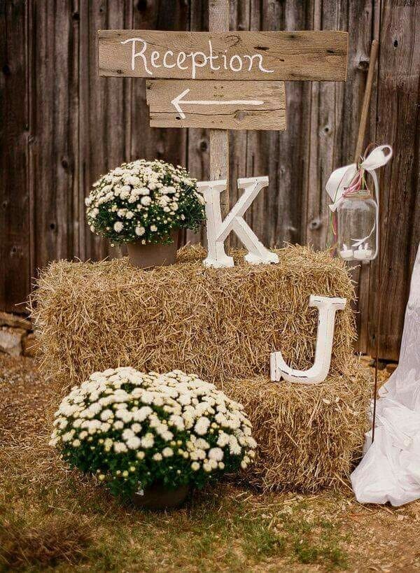 Straw bales make beautiful rustic seating, aisle markers, or altar decorations for fall weddings.