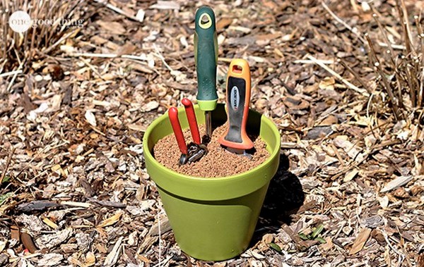 2. Make Your Own Self-Cleaning Sharpening Garden Tool Holder