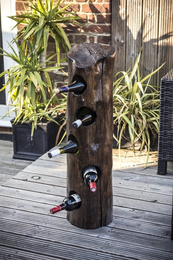 Transform a log into a rustic wine rack by drilling holes to hold wine bottles securely. This is a great way to store and display your favorite vintages with style.