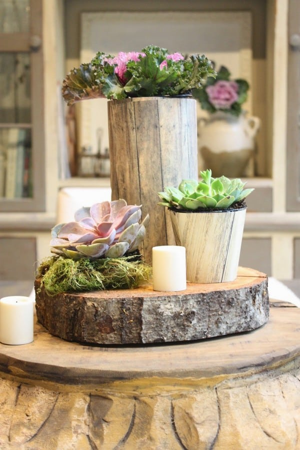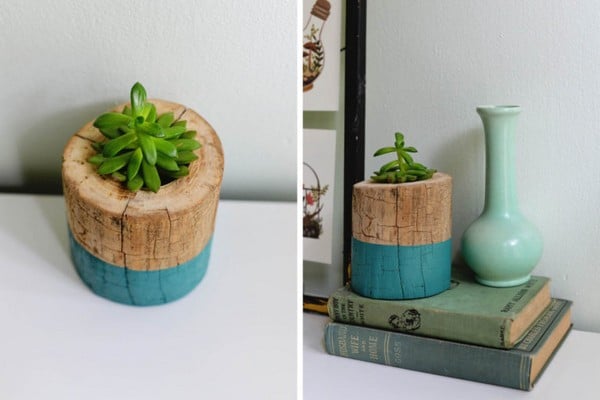 Slice a log into sections, hollow them out, and suspend them with rope or chains to create a stunning set of hanging planters. They look amazing indoors or on a patio.