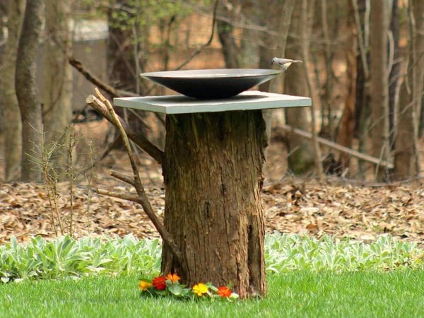 Welcome wildlife into your garden by transforming an old tree stump into a charming birdbath. Add a shallow bowl on top and watch as birds stop by for a refreshing drink.
