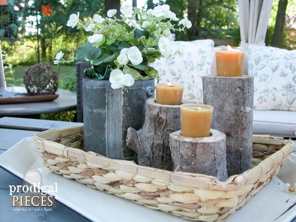 Create beautiful candlesticks by cutting logs into different heights and drilling spaces for candle placement. These make stunning table decorations or mantle accents.