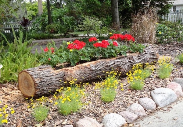 For a grander statement piece, use a large tree trunk as a natural planter. Perfect for both indoor and outdoor spaces, it adds an earthy and organic feel to your décor.