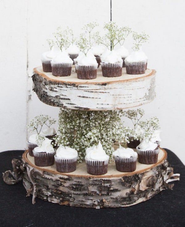 Impress your guests by using wooden log slices to craft a rustic cupcake or dessert stand. Perfect for weddings, birthdays, or farmhouse-themed gatherings.