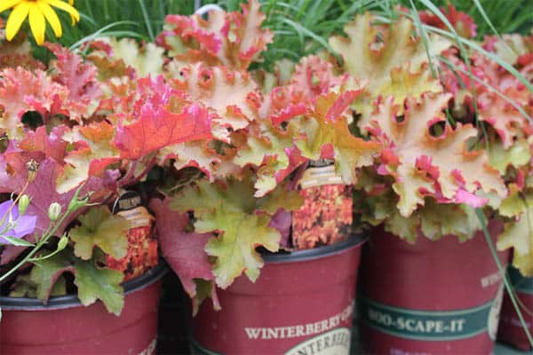 Nothing says autumn like deep reds, golden yellows, and burnt oranges. Pair ornamental grasses with mums, heucheras, and coleus for a rustic, farm-style arrangement.