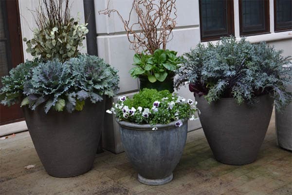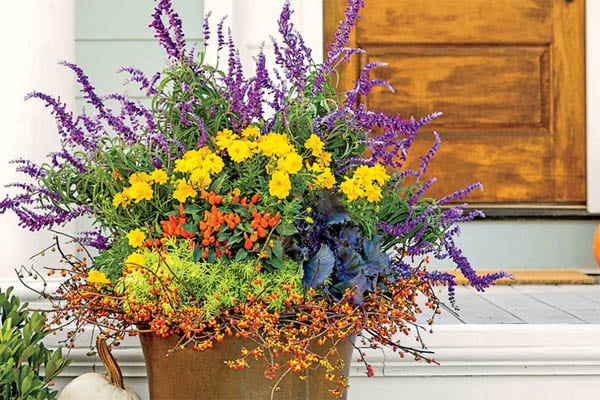 Not all autumn colors have to be warm! Mix lavender, purple ornamental cabbage, and trailing verbena for a cool-toned fall container garden.