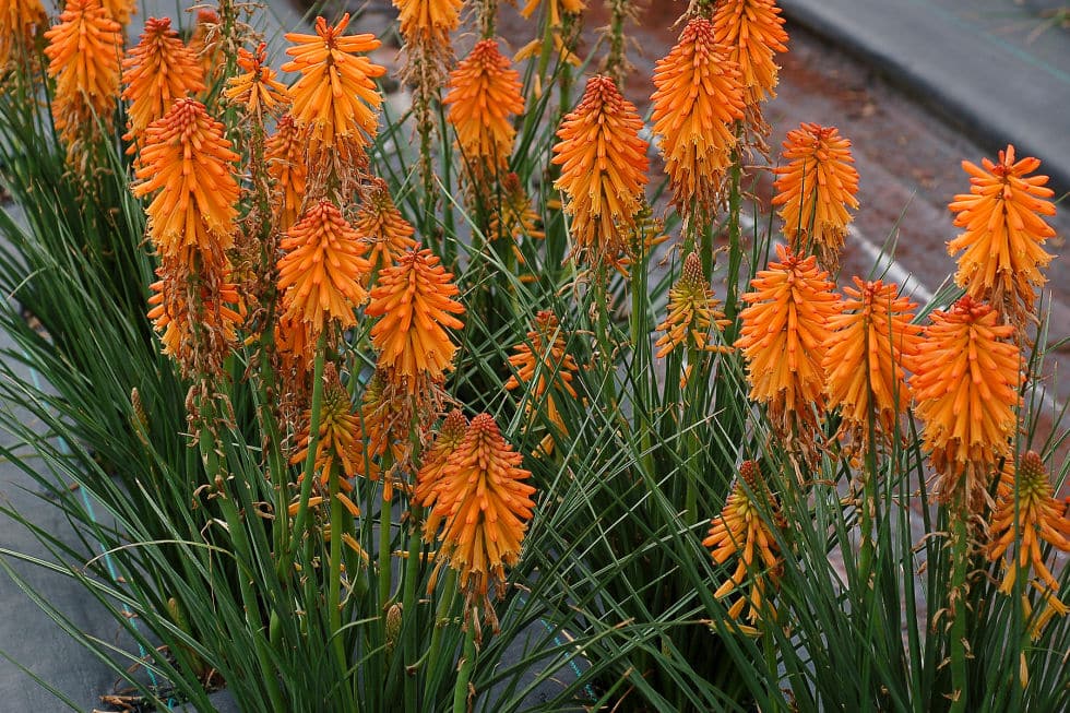 If red is more your style, this bold, fiery red kniphofia variety will add heat and intensity to your garden design.