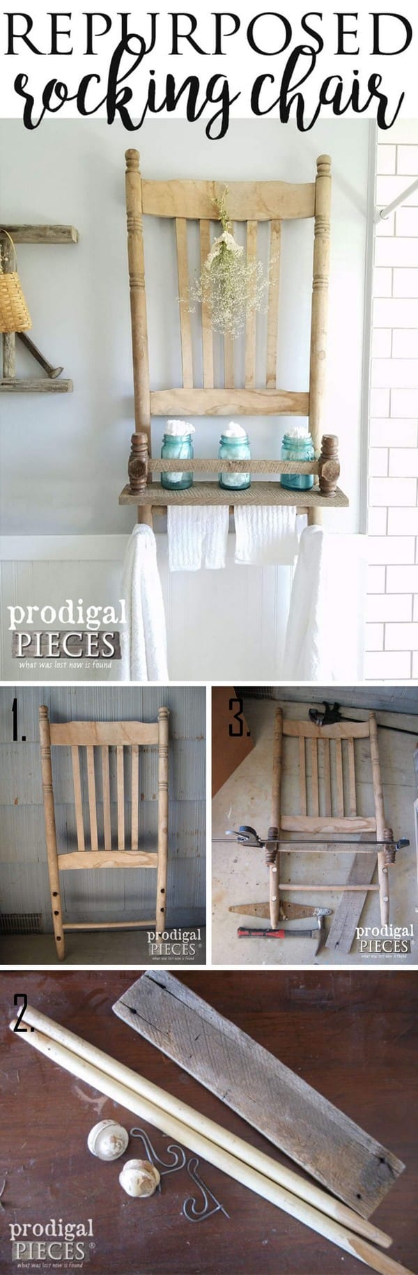 18. Lovely Upcycled DIY Chair for Your Bathroom