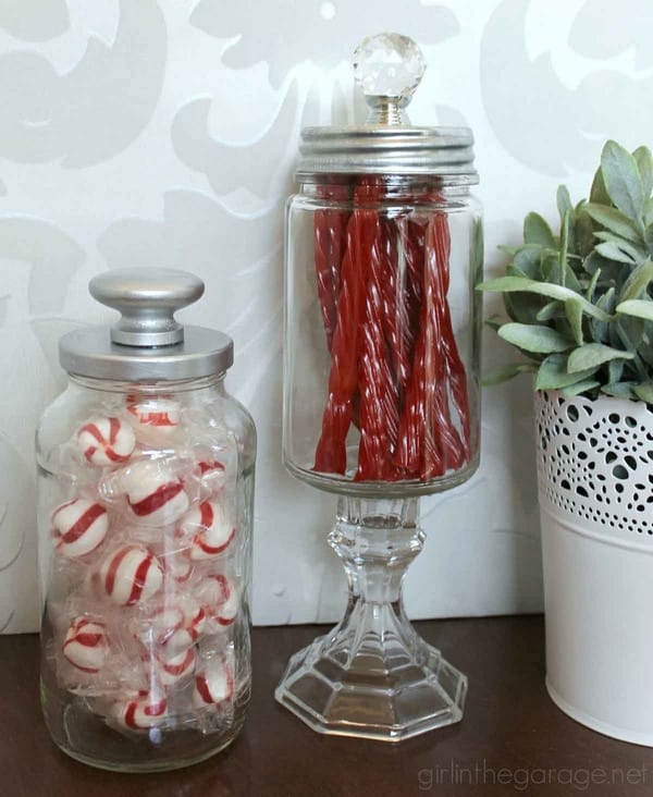 Repurpose old mason jars, jam jars, or candle jars into adorable candy storage.