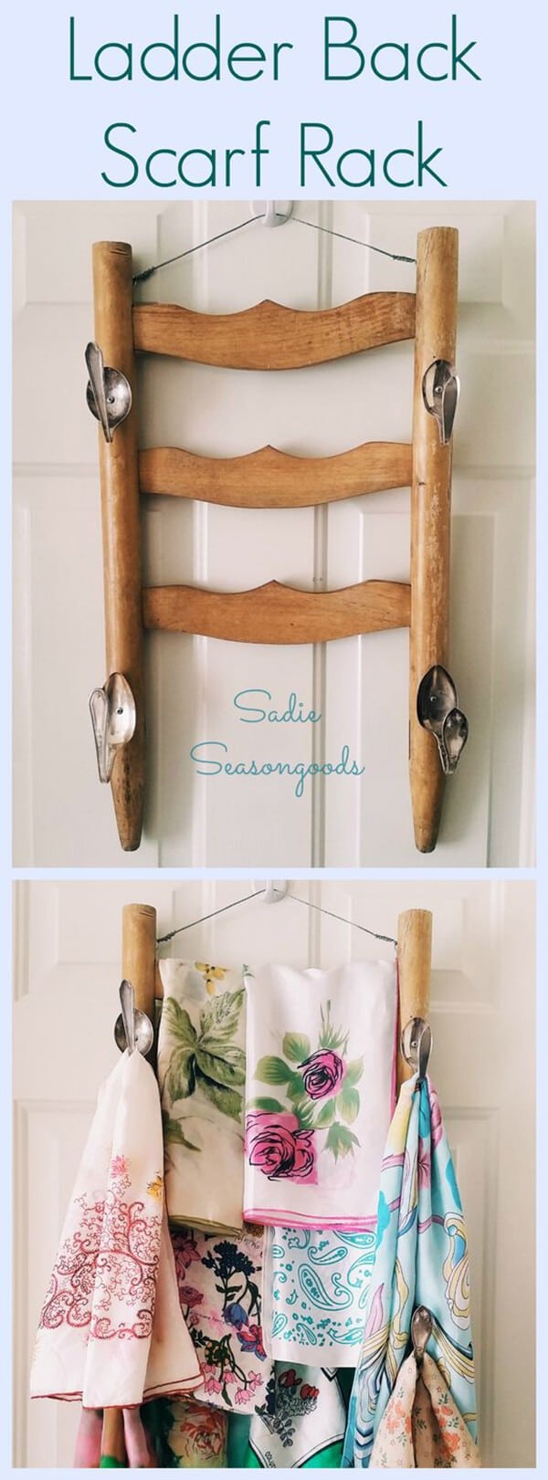 Turn an old wooden ladder into a stylish scarf or towel rack.