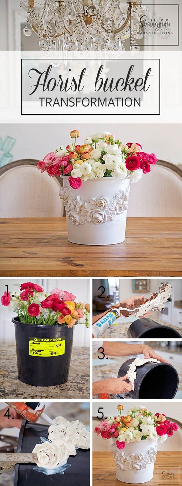 An old florist bucket can be repurposed into a stylish flower pot or storage bin.