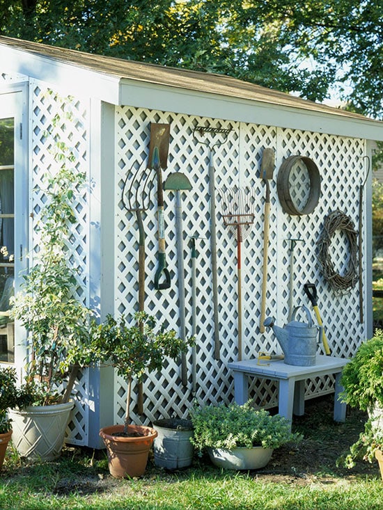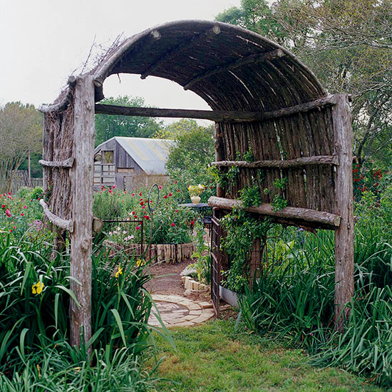 - Build a DIY arbor or trellis with rough-hewn wood.