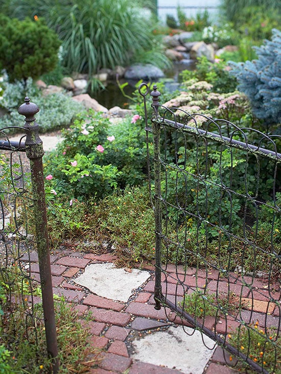 - Assemble a garden gate from driftwood or salvaged pallets.