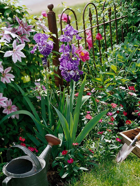 Rustic gardens are informal and free-flowing, featuring lots of wildflowers, herbs, vines, and ornamental grasses. Think more “cottage garden” than “formal borders.”