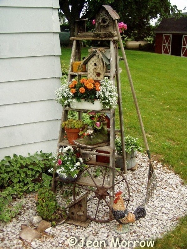 You can also repaint the ladder in bright colors or a rustic finish to match your outdoor decor.