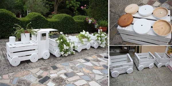 Paint them in pastel hues or a weathered wood finish to blend with your garden setting. Stack them creatively at different angles to create a layered flower arrangement.