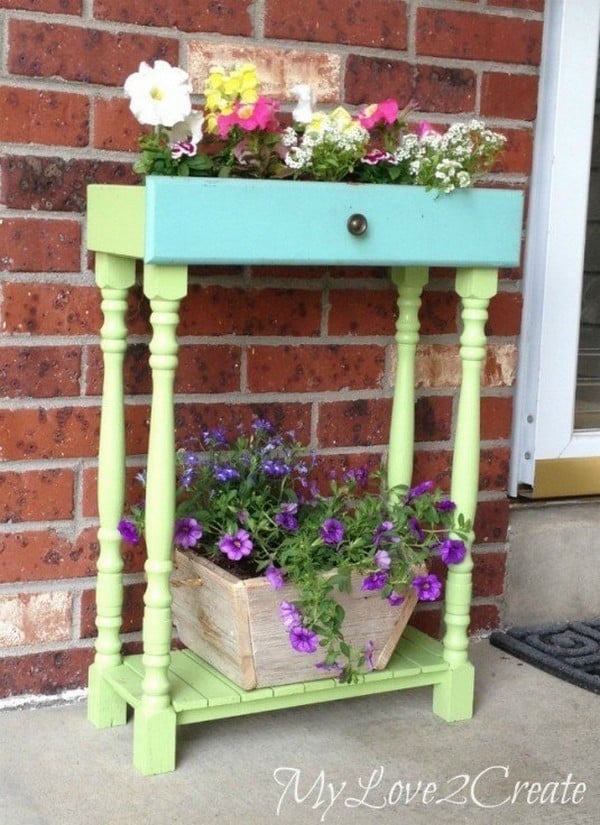 If you have an old dresser, repurpose the drawers into unique flower planters.