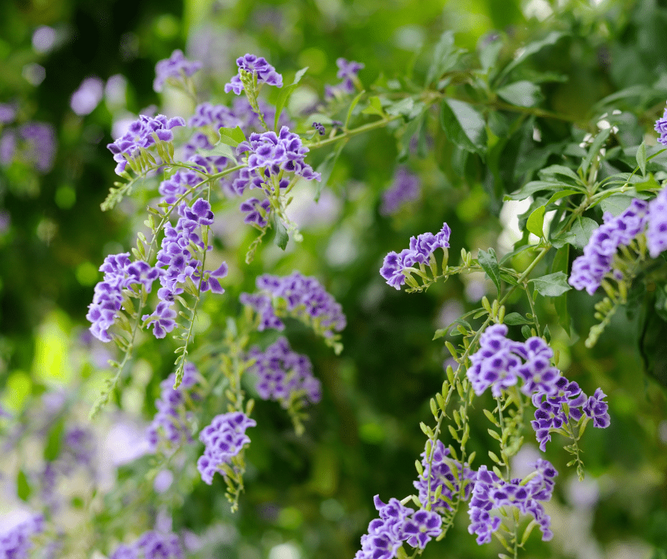 Despite its name, the golden dewdrop produces striking violet-blue flowers. In warmer zones, it grows as a woody shrub; in colder climates, it’s grown as an annual.