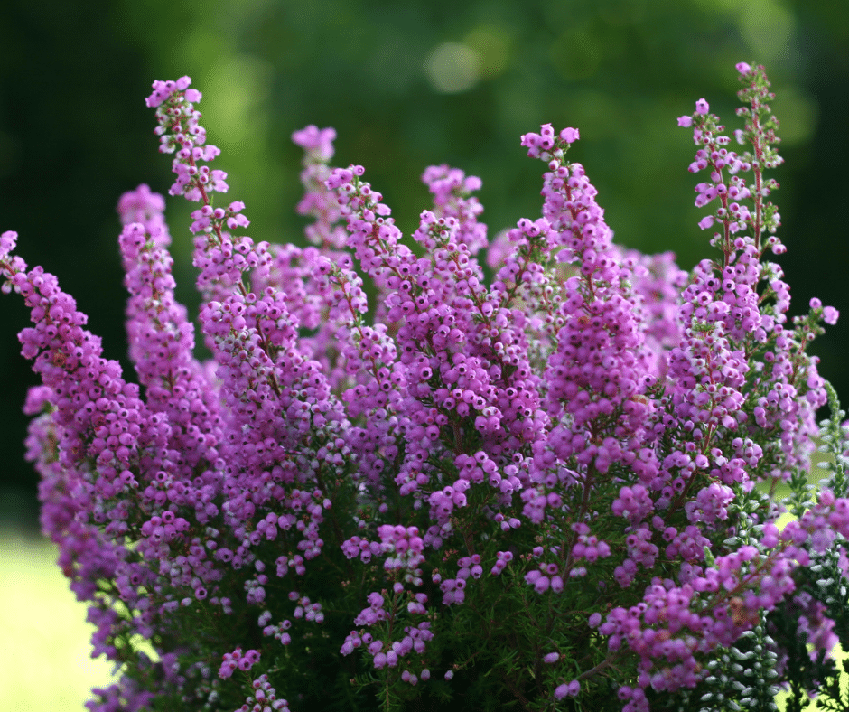 This low-growing shrub thrives in cool climates and acidic soils. Its tiny lavender or purple flowers bloom in dense clusters, often during late summer and fall.