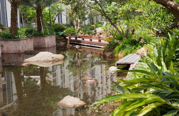 A simple wooden bridge spanning over a pond creates a relaxing, natural vibe. Itβs perfect for those who love a traditional, organic look.