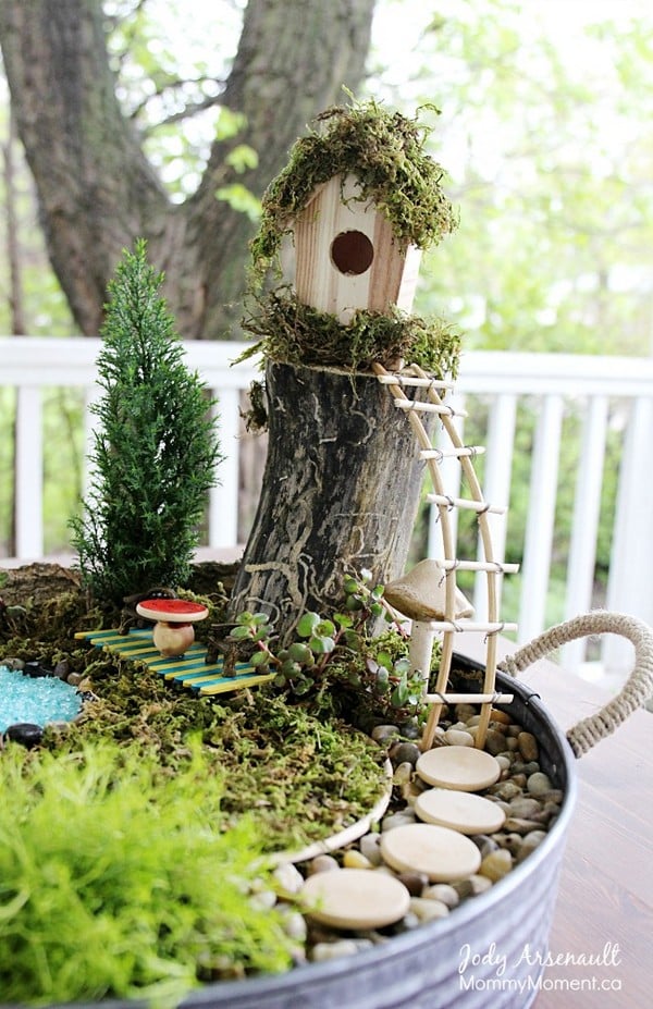 Decorate with tiny ladders, stairs, and fairy figurines.