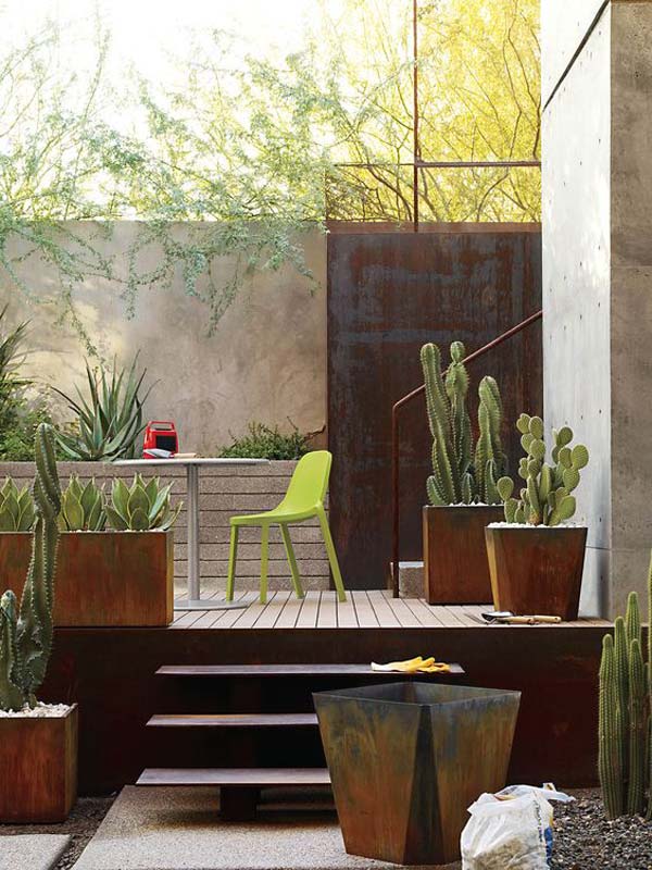 If you want to add texture, contrast, and character to your outdoor space, rusted metal accents are the perfect addition!