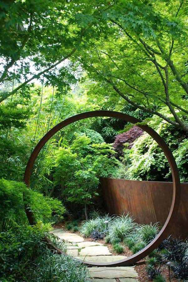 3. Create a Beautiful Garden Landscape with a Metal “Moongate”