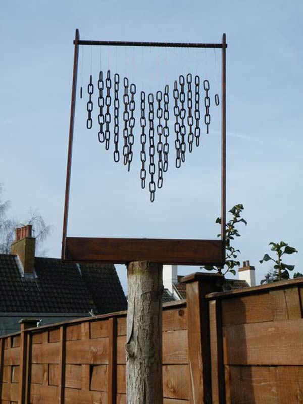 Instead of discarding old rusty chains, turn them into a DIY wind chime!