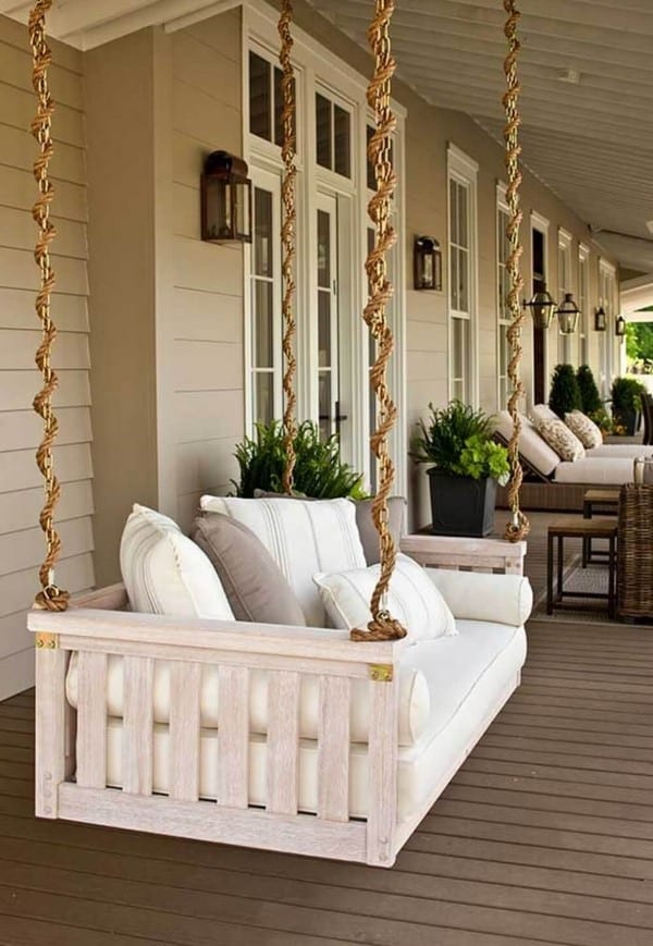 ✔ Upcycle an old wooden bed frame into a porch swing.