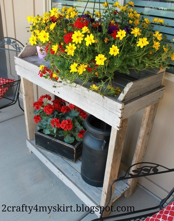 ✔ Upcycle old wooden pallets into a rustic potting bench.