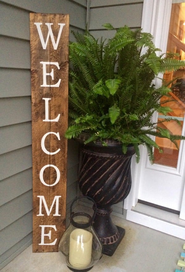 ✔ Place a large, wooden “WELCOME” sign by the door.