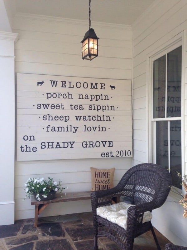 Bonus Tip: Match the sign with a rocking chair and a metal lantern for a cozy feel.
