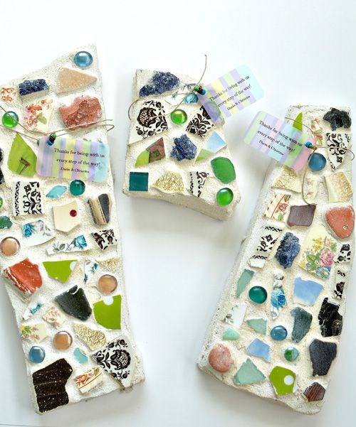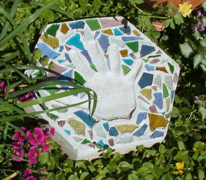 Get the whole family involved by crafting homemade stones using handprints, shells, marbles, or beads. Use disposable cake pans or pizza boxes as molds.