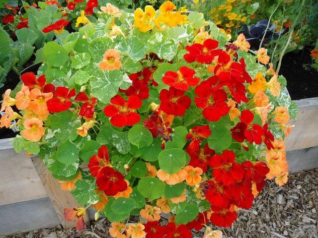 These edible flowers aren’t just pretty – they add a peppery flavor to salads. Nasturtiums are great companion plants and do well in hanging baskets or poor soils.