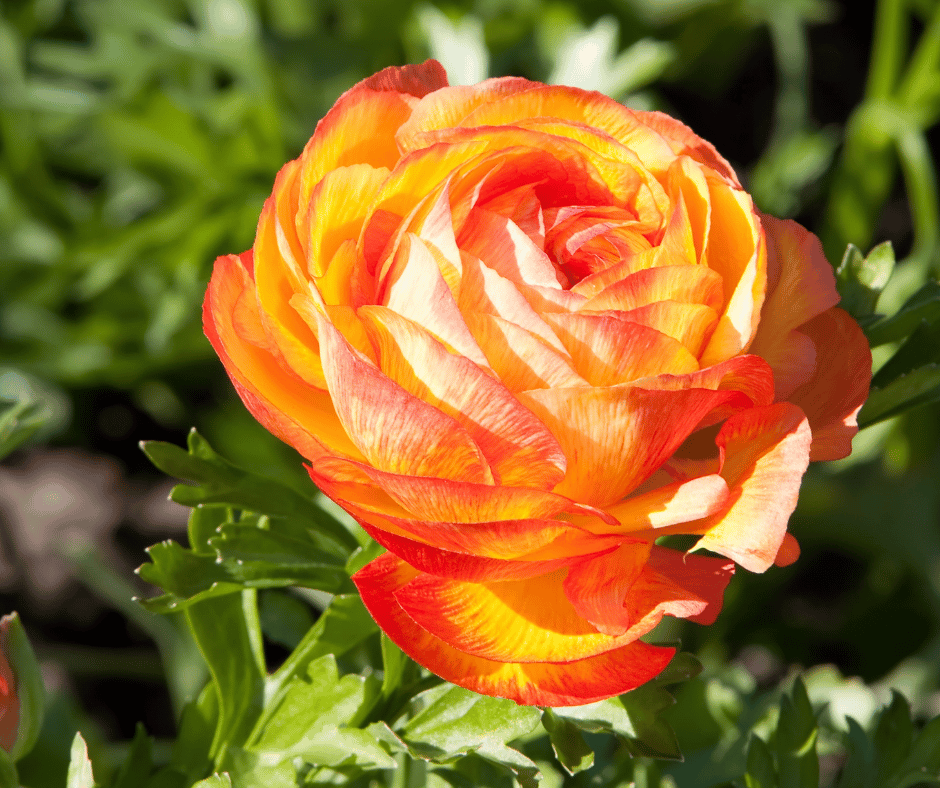 Ranunculus flowers look like layers of soft tissue paper. Their rich orange hues make them a favorite for floral arrangements and spring beds.