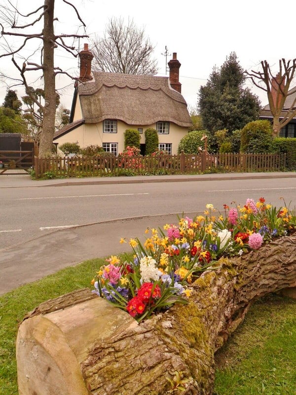 6. Rustic Hollow Log Flower Bed