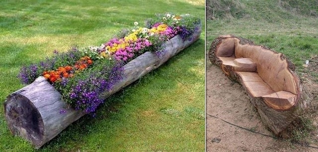 11. Hollowed Log Planter – Convert a hollow log into a natural and eye-catching planter.